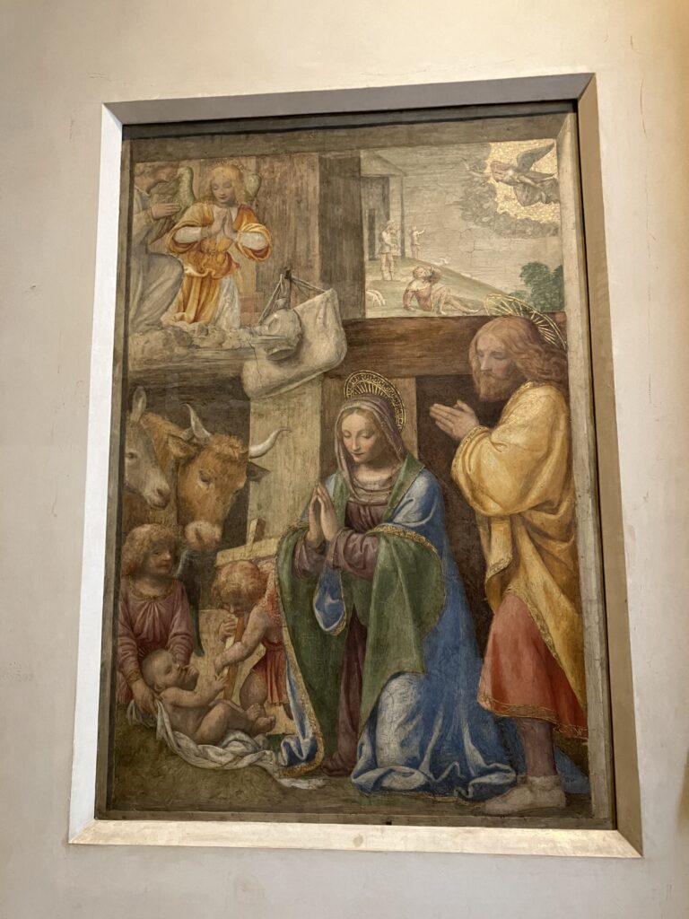 イタリア中世時代の淡い色が美しいフレスコ画も目にすることができます。
