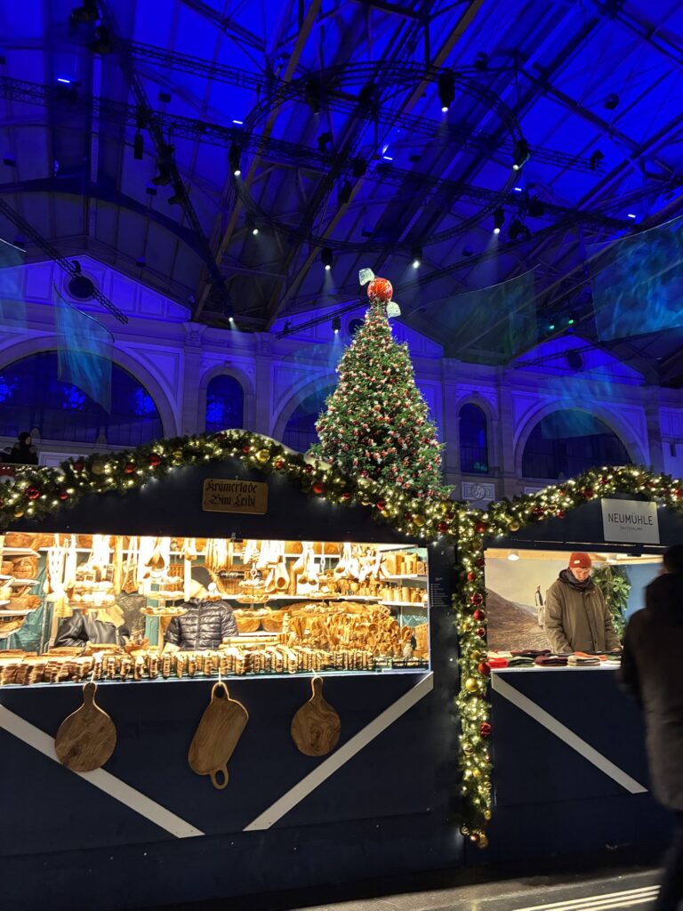 チューリッヒ中央駅のマーケットは、ヨーロッパでは数少ない インドア型のクリスマスマーケット。屋内型のクリスマスマーケットとしては、ヨーロッパ最大規模です。