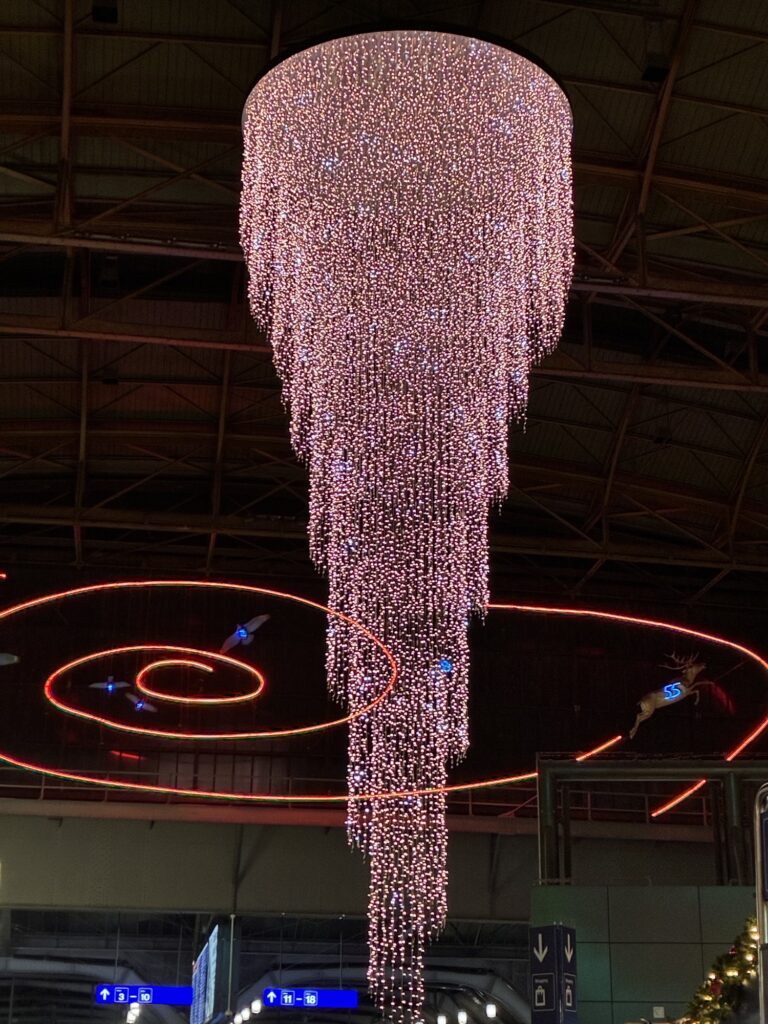 私はフランスから長距離バスでチューリッヒ中央駅に到着し、夜のクリスマスマーケットを楽しんでから、チューリッヒ空港で一泊。翌日の午前便で日本に帰国しました。